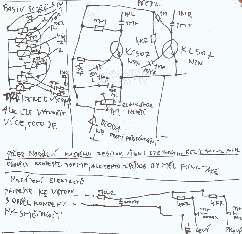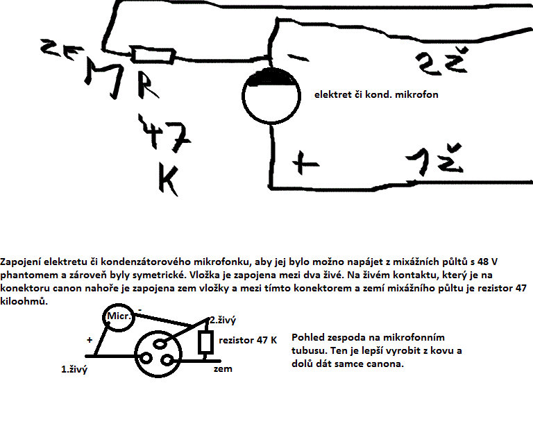 Zde je další návod schéma předzesilovače s pomocným fantomem. Celý je mono, ale lze jej postavit dvakrát. Lze jej též použít do mixážního pultu. Fantom lze zavést do jedné zdířky, která bude pro elektrety.
